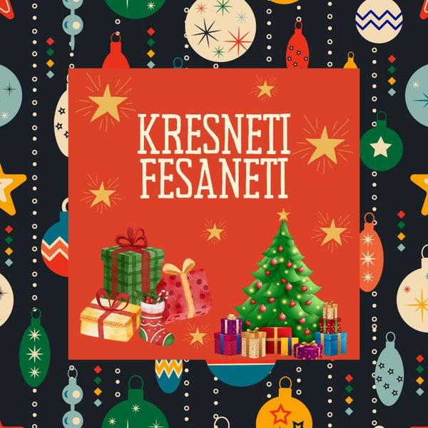 Set van 6 kleurrijke dubbele kerstkaarten inclusief enveloppen.